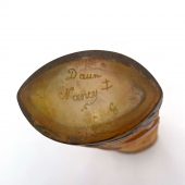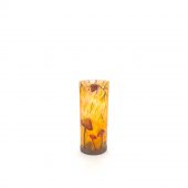 Daum Nancy Mushroom Vase, brown, orange, yellow and cream colored cameo glass with enameled colorful mushrooms, signed “Daum Nancy” on the base. Item #4070