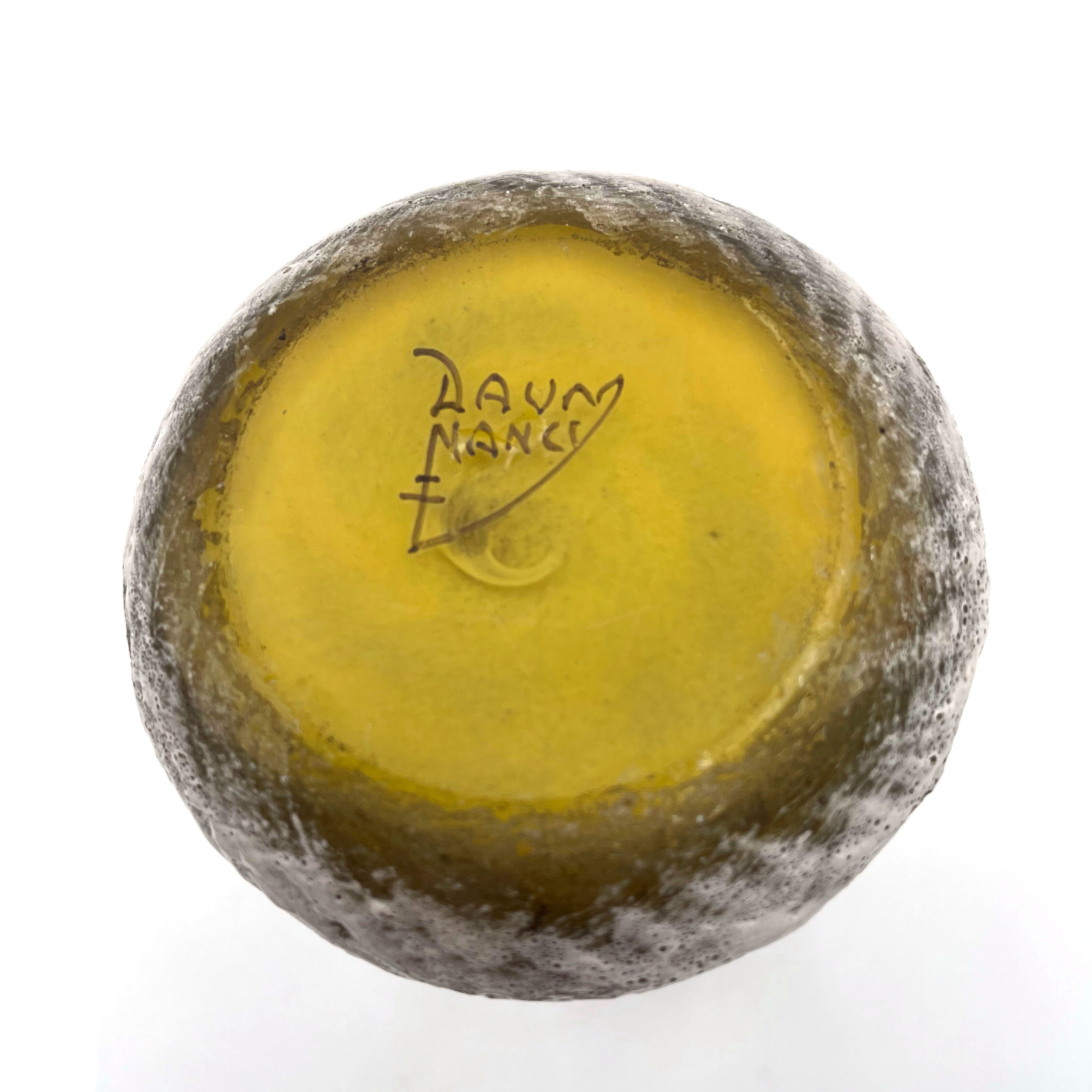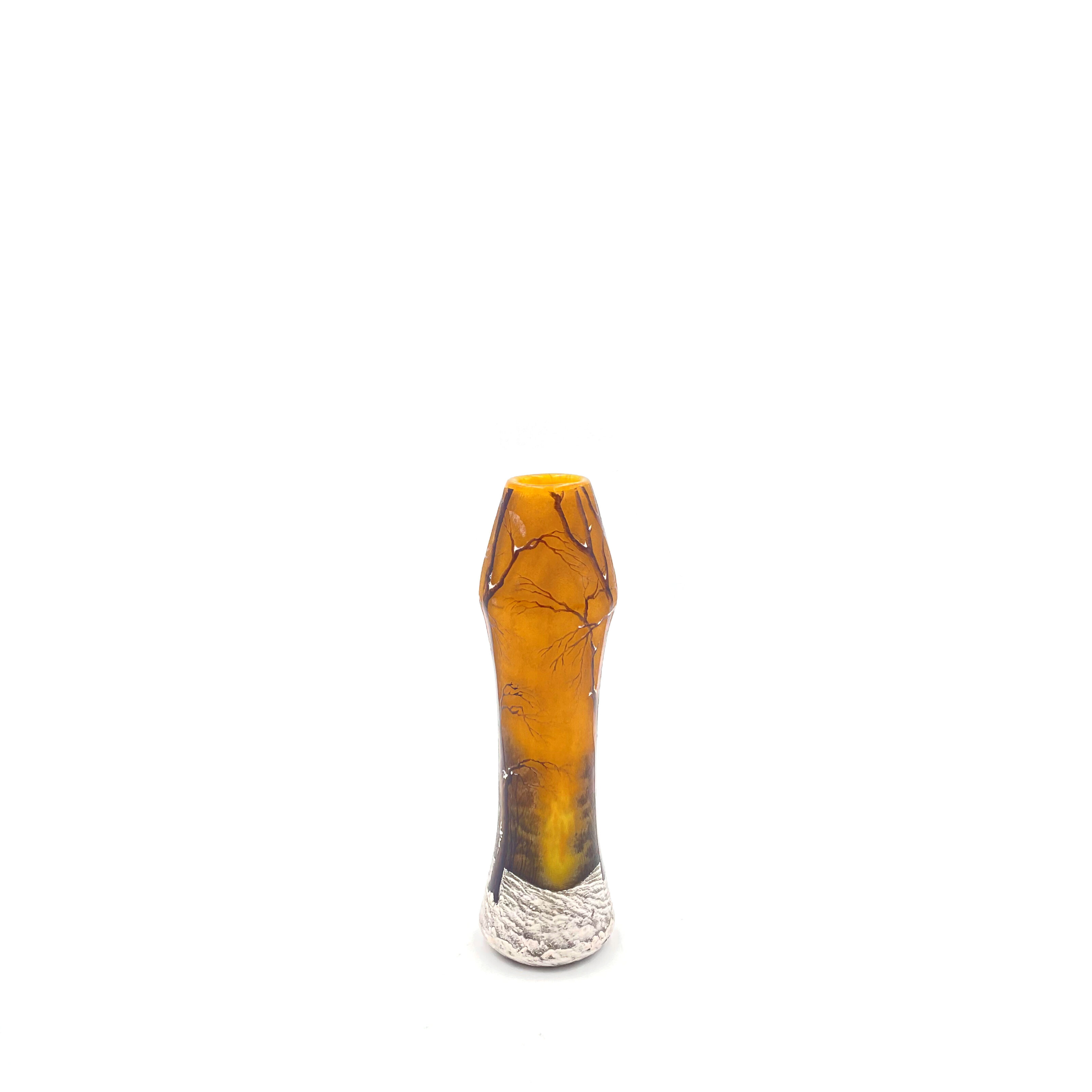Daum Nancy Winter Scene Vase, leafless trees on snow covered ground during the winter season, signed “Daum Nancy” on the base, a nice example. Item #3984