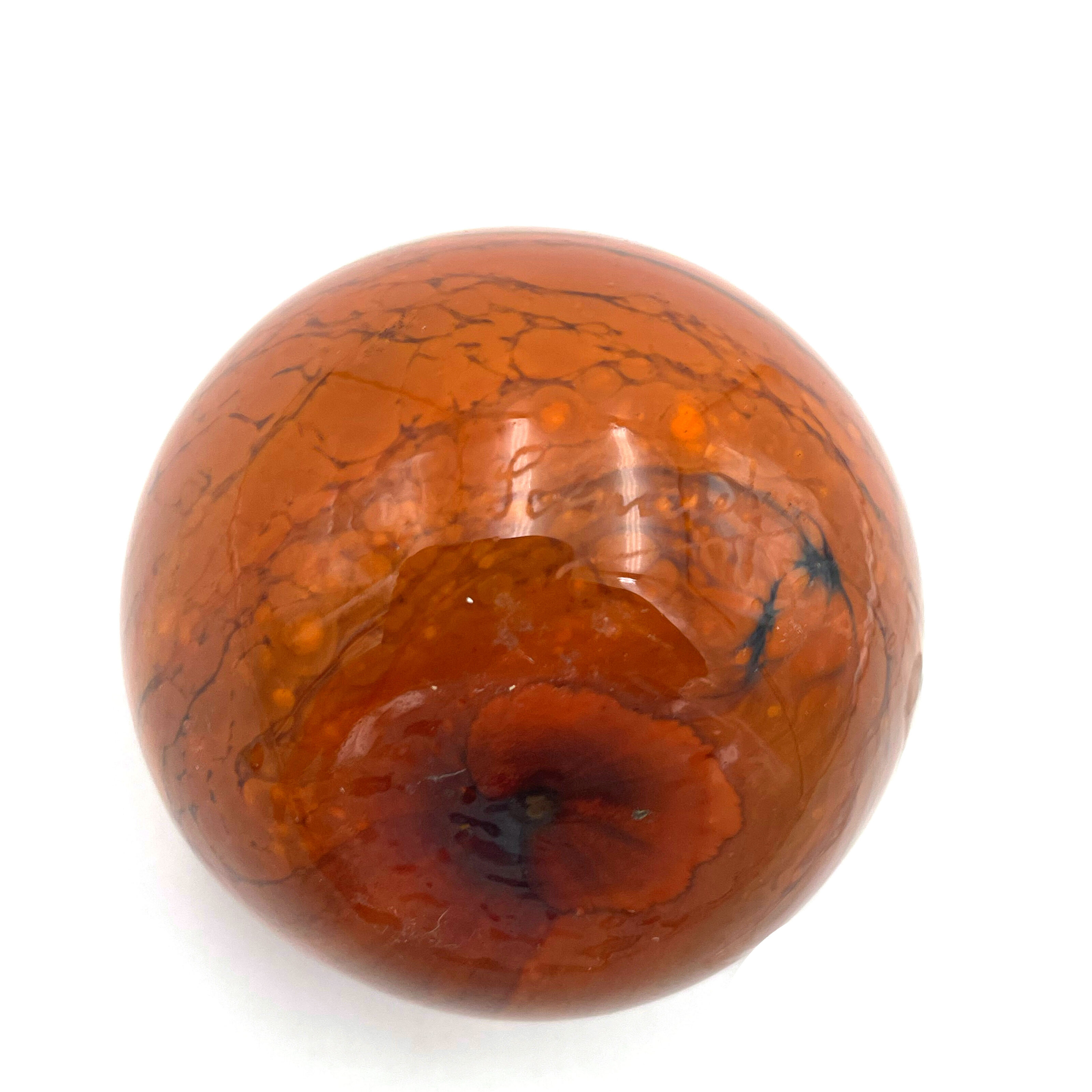 Rare Schneider Perfume Bottle, mottled orange and yellow glass with original stopper, signed Schneider France” on the lower side. Item #3960