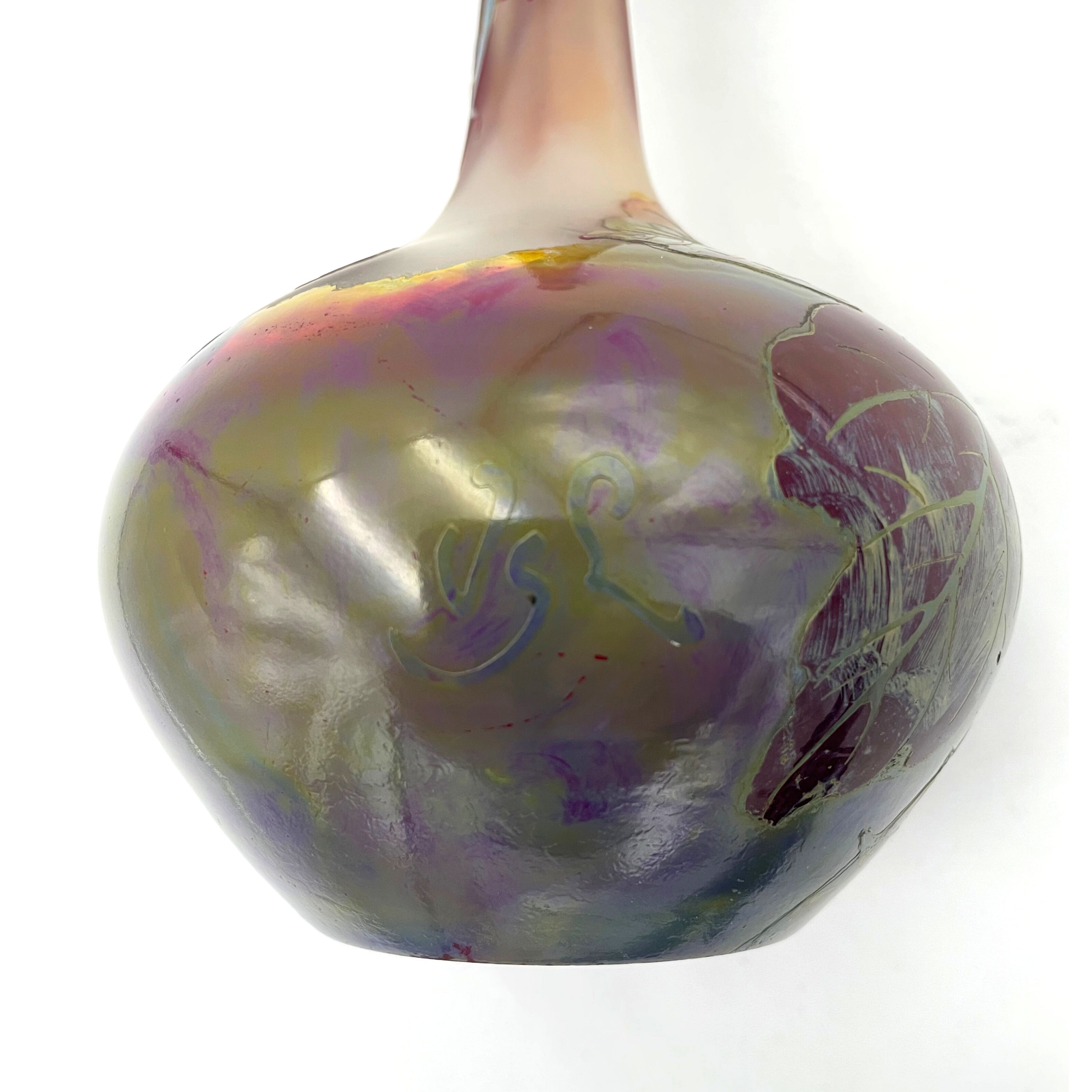 Rare Val Saint-Lambert Cameo Vase, deco fluograve technique of berries and leaves by artist Leon Ledru, signed VSL on the lower side, beautiful vase! Item #4048